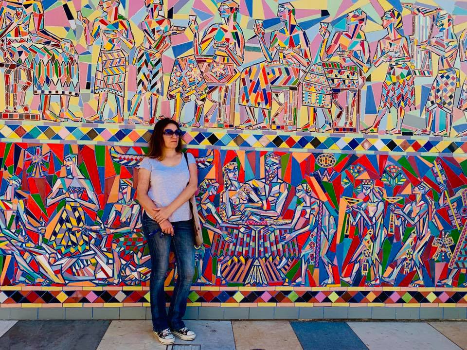 L’assistente di Nik stava preparando la colla e i tasselli per il mosaico. In dieci minuti siamo tutti in piedi, mezz’ora dopo le camere sono accese, i microfoni piazzati, io e Francesca appiattite all’altro lato del muro a guardarlo lavorare.